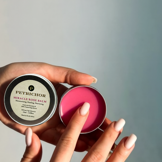 Introducing our award-winning & top selling Miracle Rose Balm, a luxurious fusion of nature's finest ingredients designed to nurture, protect, and revitalize your skin. This multi-purpose balm is a true skincare marvel, offering unparalleled hydration and rejuvenation for your face, lips, and body. Packaged in a generous 50ml container for indulgent pampering at home, and a convenient 10ml travel size, perfect for on-the-go touch-ups or as a nourishing lip balm. Experience the transformative magic of our top-selling Miracle Rose Balm, delivering a radiant glow and ultimate skin nourishment wherever you go.